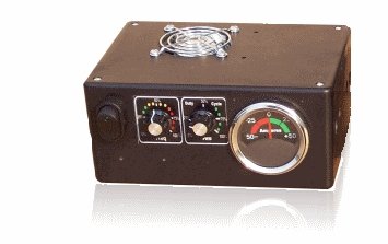 Includes and On/Off switch, a 30 amp Pulse Width Modulator, a 50 amp dial (analog) gauge, and a PWM duty cycle knob and a frequency adjustment knob.