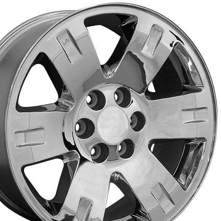 FeaturesCadillac Escalade ESV / EXT / Hybrid 1999-Current. Chevrolet Suburban K1500 1988-99 / All Suburban 2000-Current. Blazer 1992-94. Tahoe 1995-99 4x4 only / All Tahoe 2000-Current. Silverado 1500 / Hybrid 1999-Current. Avalanche 1500 2002-Current. GMC Sierra 1500 2x4 1999-Current / All Sierra 07-current. Yukon Denali 1992-99 4x4 only / All Yukon 1500 / Denali / Z71 / XFE 2000-current. Fitment provided for stock, 6 lug bolt pattern vehicles only.Center cap included, Original center cap will interchangeGuaranteed Fitment provided for stock vehicles onlyQuestions on fitment or tires? Ask our one of our wheel techs!Discounted lug packages also available, call us today! 1-866-273-3651 Yukon Style Wheel Fits GMC - Chrome 20x8.5?